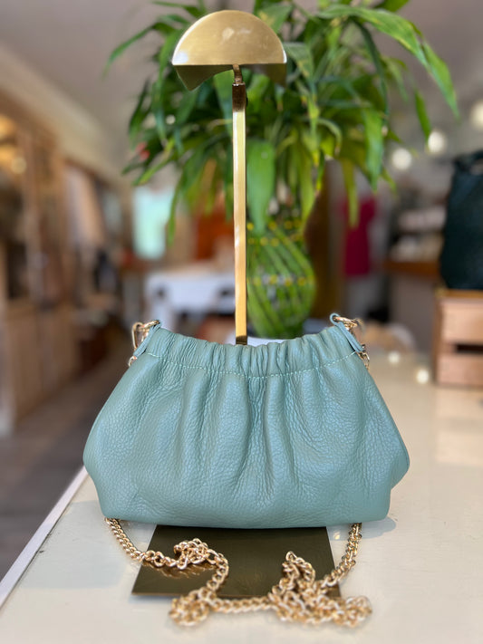 Italian Wristlet Leather Bag w/Shoulder Strap-Mint