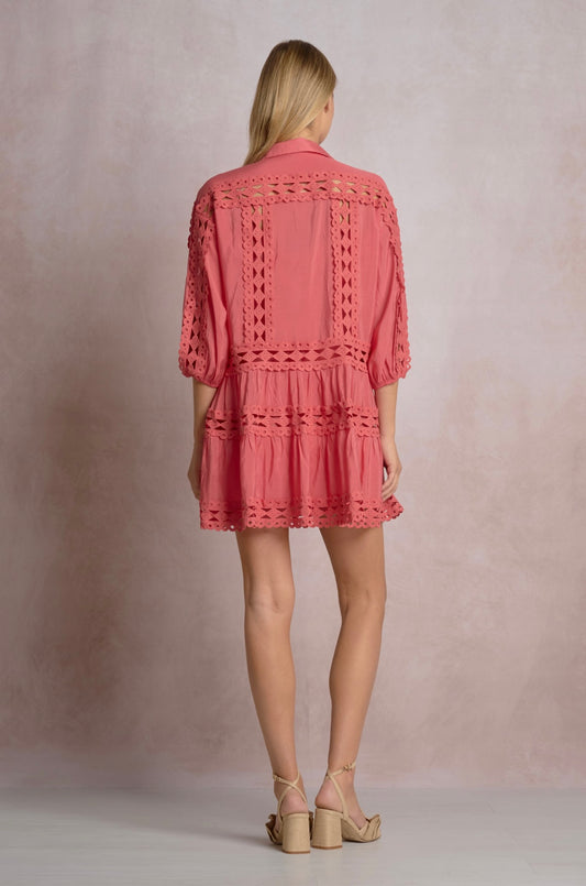 3/4 Sleeve Collare Dress-Bright Pink