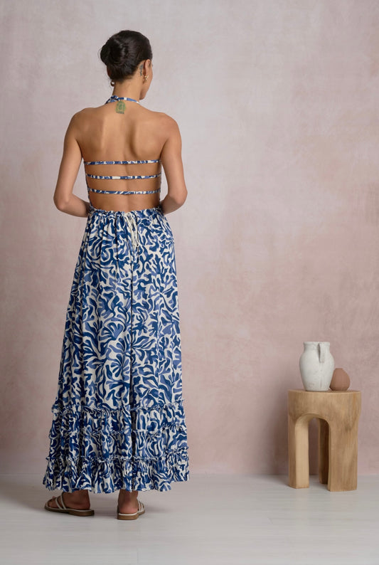 Maxi Dress w/Back Straps-Blue Coralina
