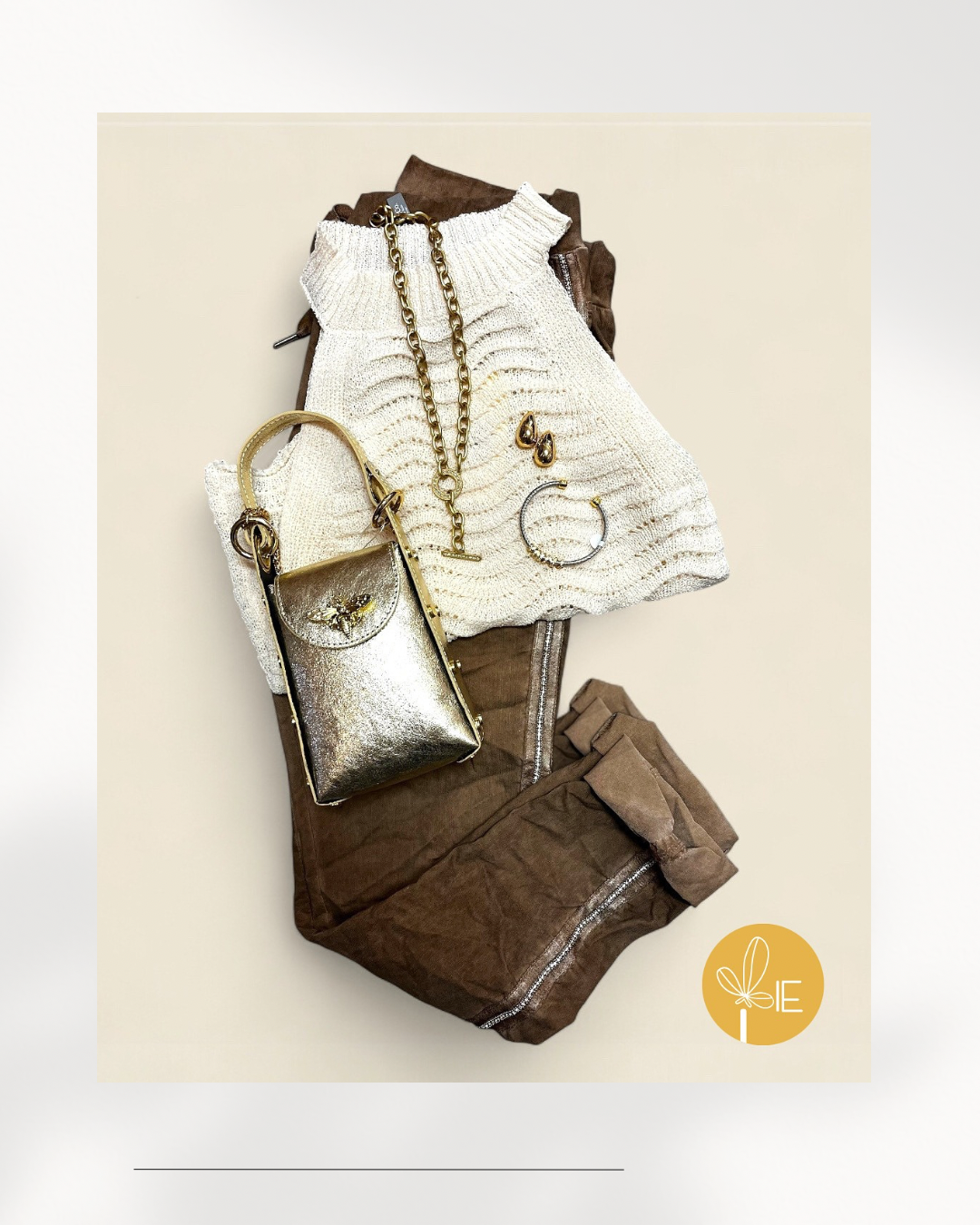 Italian Wristlet Leather Bag w/Shoulder Strap-Mint