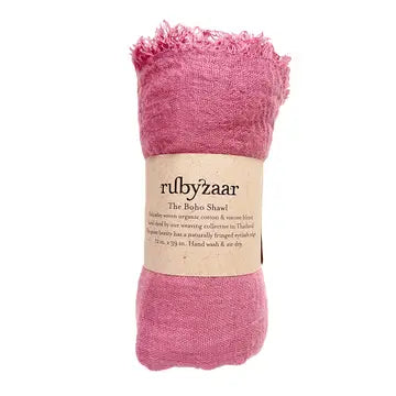 Delicately woven cotton & viscose shawl. Hand dyed by our weaving collective in Thailand. This gauze beauty has a naturally fringed eyelash edge. 72” x 39”