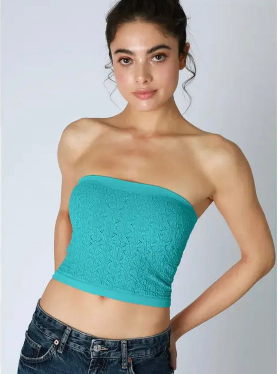 Floral Lace Tube Top-Bluebird