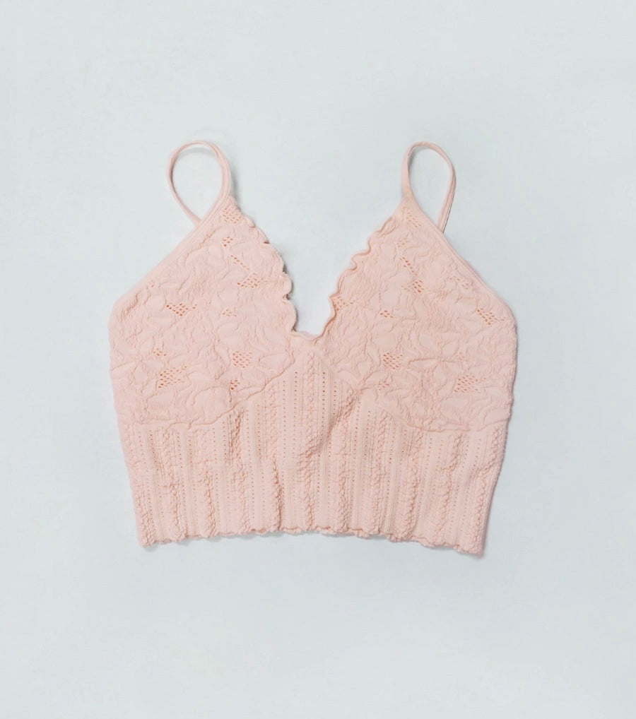 Lace Textured Bralette-Peachy Pink