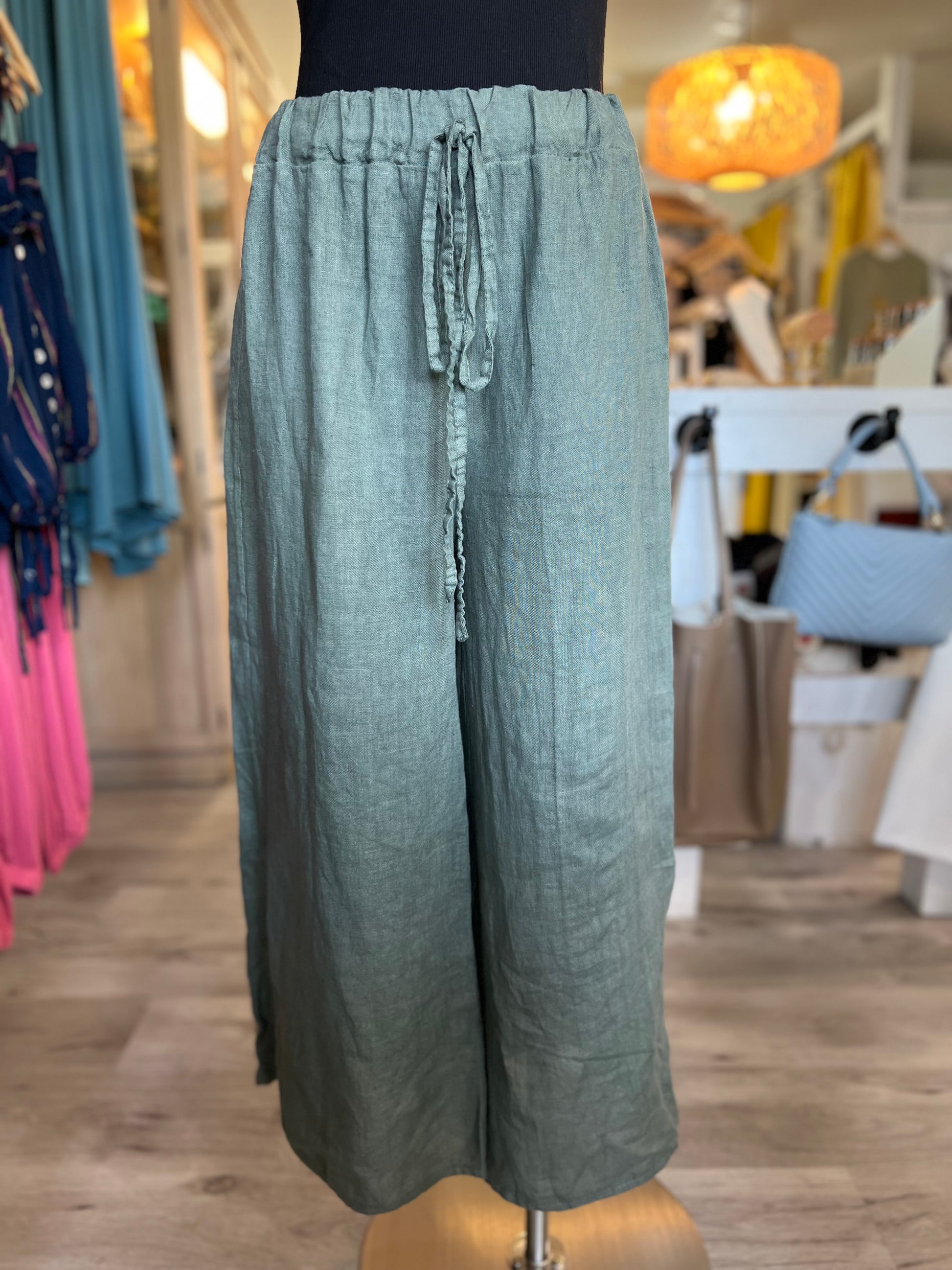 Italian Linen Pants-Olive