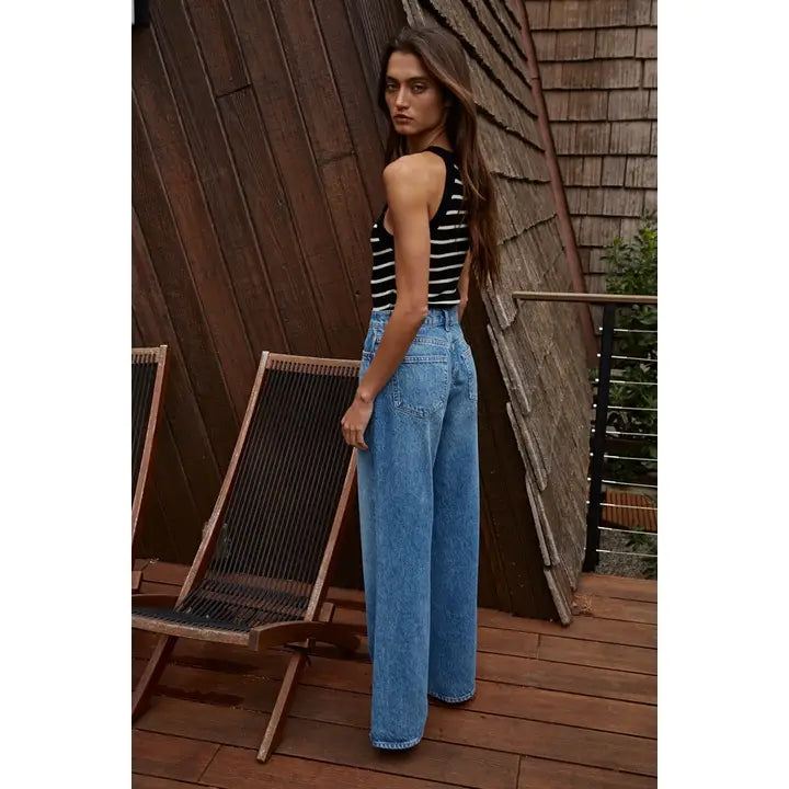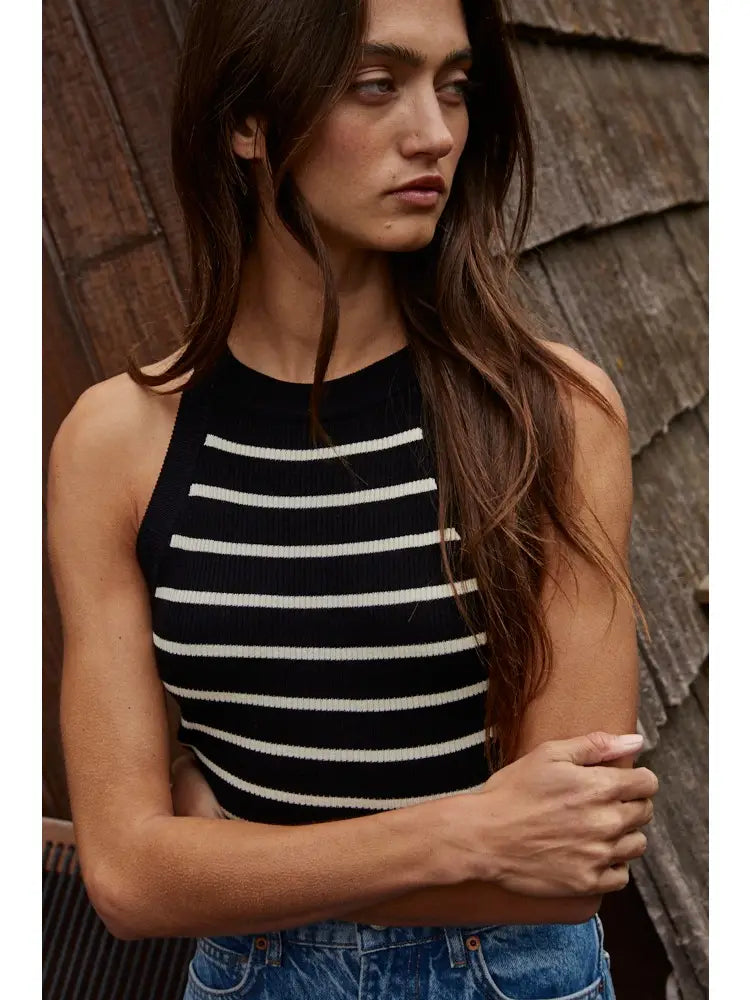 Knit Sweater Ribbed Striped Tank Top-Black Cream