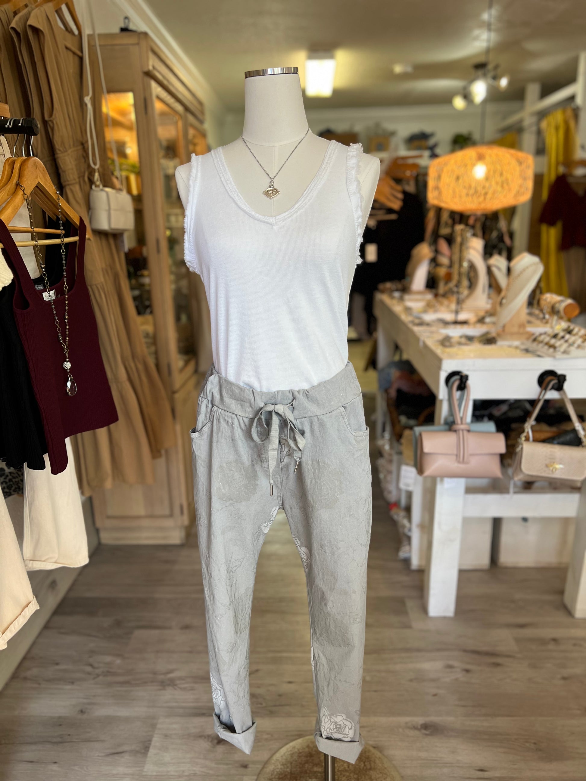Sequin V-Neck Tank-White