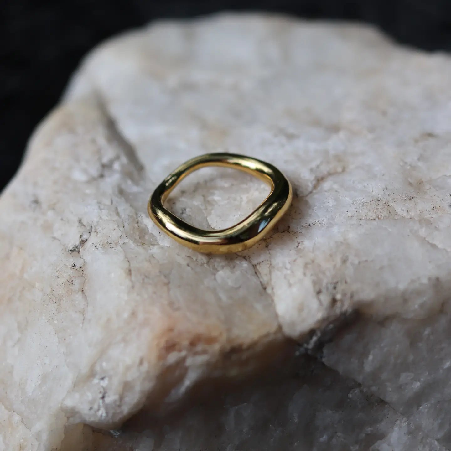 Make a splash with our Wave Ring. Available in sizes 6, 7, and 8, this timeless piece will be your new favorite!. Bring on the elements and stay stylish with our versatile ring, stainless steel and 18 k gold plated making it water proof. Don't just wear it, live it!